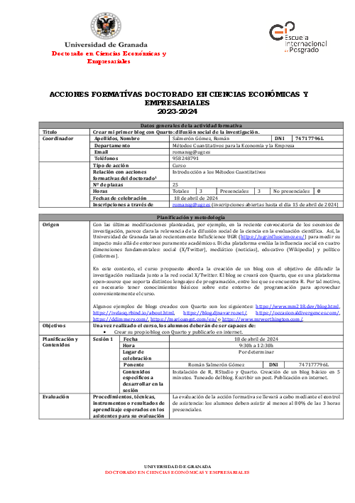 Universidad de Granada | Programa de Doctorado en Ciencias Económicas y Empresariales