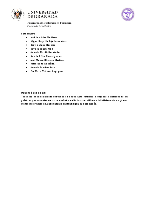 Universidad de Granada | Programa de Doctorado en Farmacia