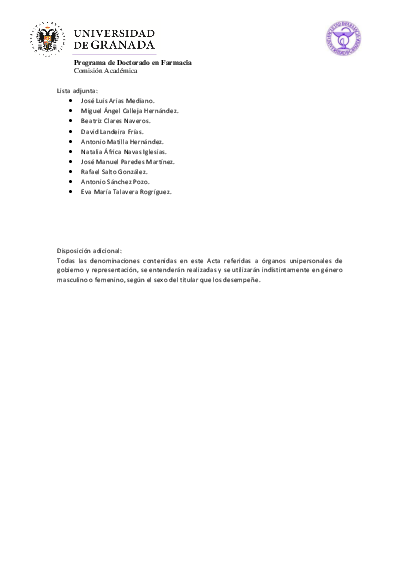 Universidad de Granada | Programa de Doctorado en Farmacia