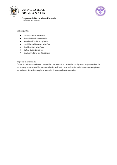 Universidad de Granada | Programa de Doctorado en Farmacia