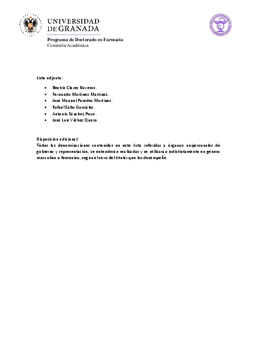 Universidad de Granada | Programa de Doctorado en Farmacia