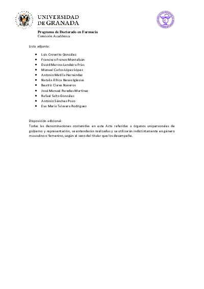 Universidad de Granada | Programa de Doctorado en Farmacia