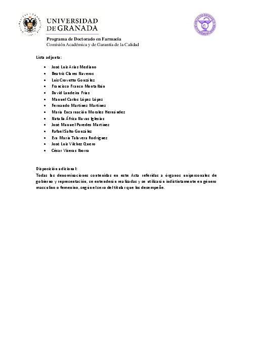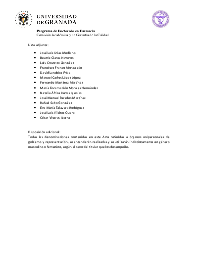 Programa de Doctorado en Farmacia