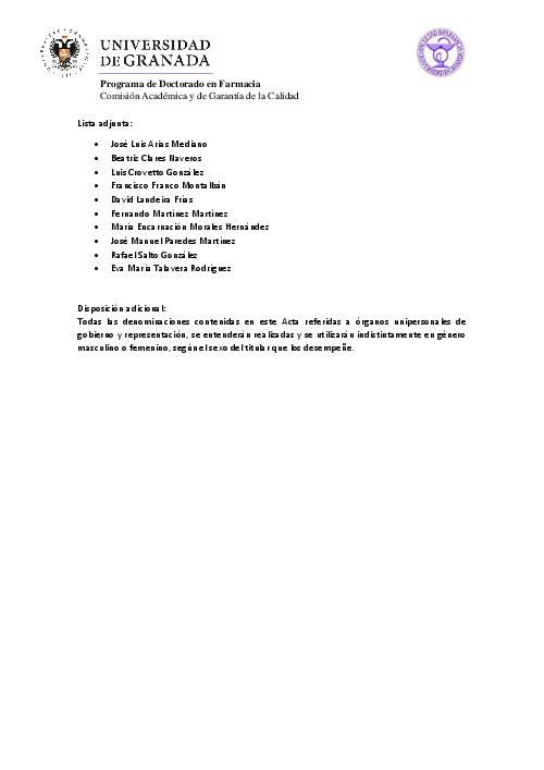 Programa de Doctorado en Farmacia