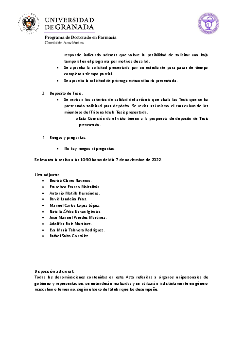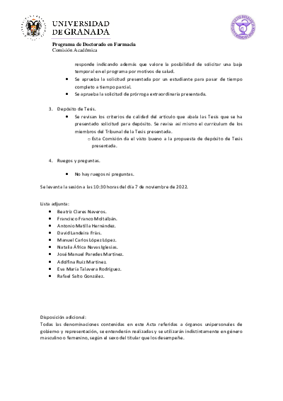 Programa de Doctorado en Farmacia