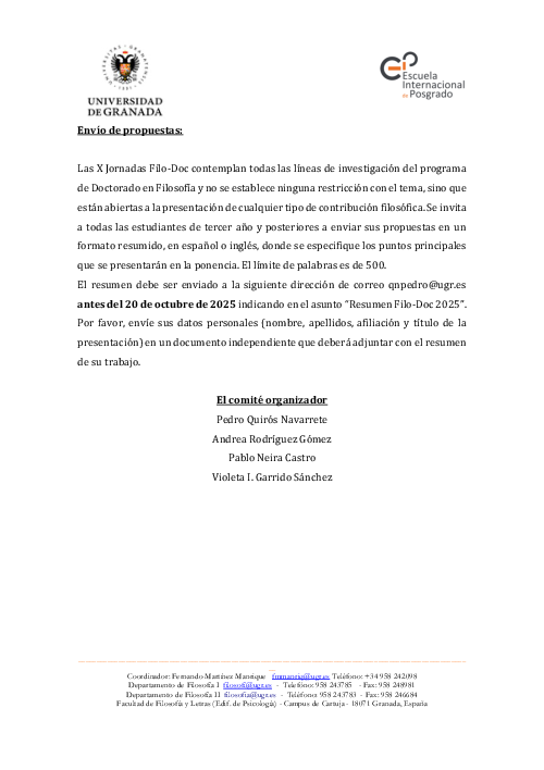 Master en Filosofía Contemporánea UGR Master Interuniversitario en Lógica y Fª de la Ciencia PD en Estudios de las mujeres, discursos y prácticas de género UGR
