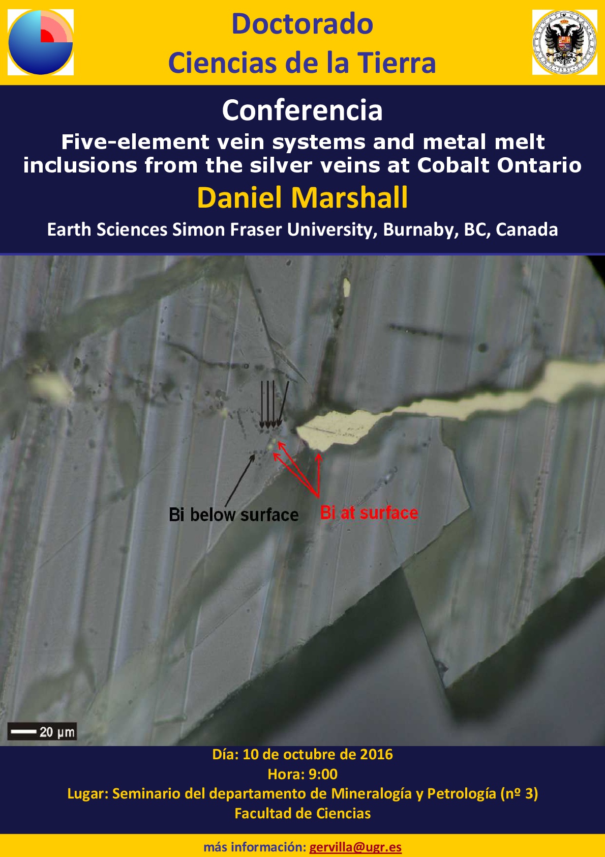 Parte I: martes 8 de noviembre, 11–13:30 h. Parte II: miércoles 9 de noviembre, 11–13:30 h. En ambos casos en el Salón de Grados de la Facultad de Ciencias