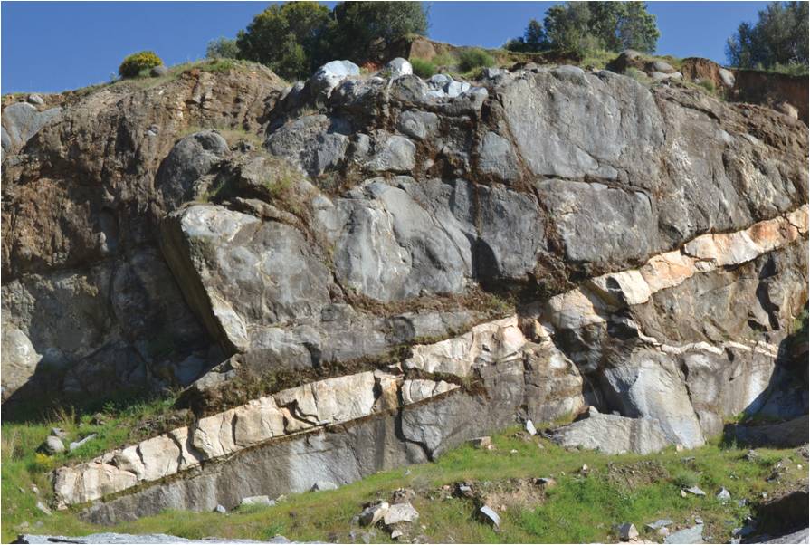 Para poder explicar la amplia variabilidad composicional es necesario la presencia de dos fuentes mantélicas; la primera litosférica a la que estrían asociados los derivados máficos alcalinos; y la segunda astenosférica la cual generaría los magmas de composición toleiitica. La tercera fuente implicada en este proceso se relaciona con la fusión parcial de la corteza, los sedimentos que dan forma al basamento de la Zona de Ossa-Morena, produciendo los fundidos félsicos peraluminosos.