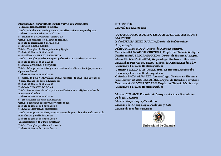 Calendario de las reuniones de la CAM y Comisión de Garantía de Calidad