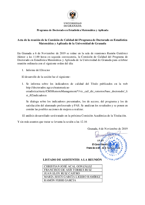Universidad de Granada | Programa de Doctorado en Estadística Matemática y Aplicada