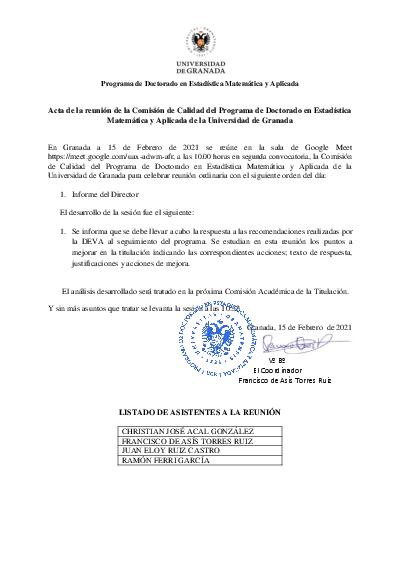 Universidad de Granada | Programa de Doctorado en Estadística Matemática y Aplicada