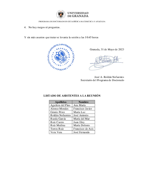 Universidad de Granada | Programa de Doctorado en Estadística Matemática y Aplicada