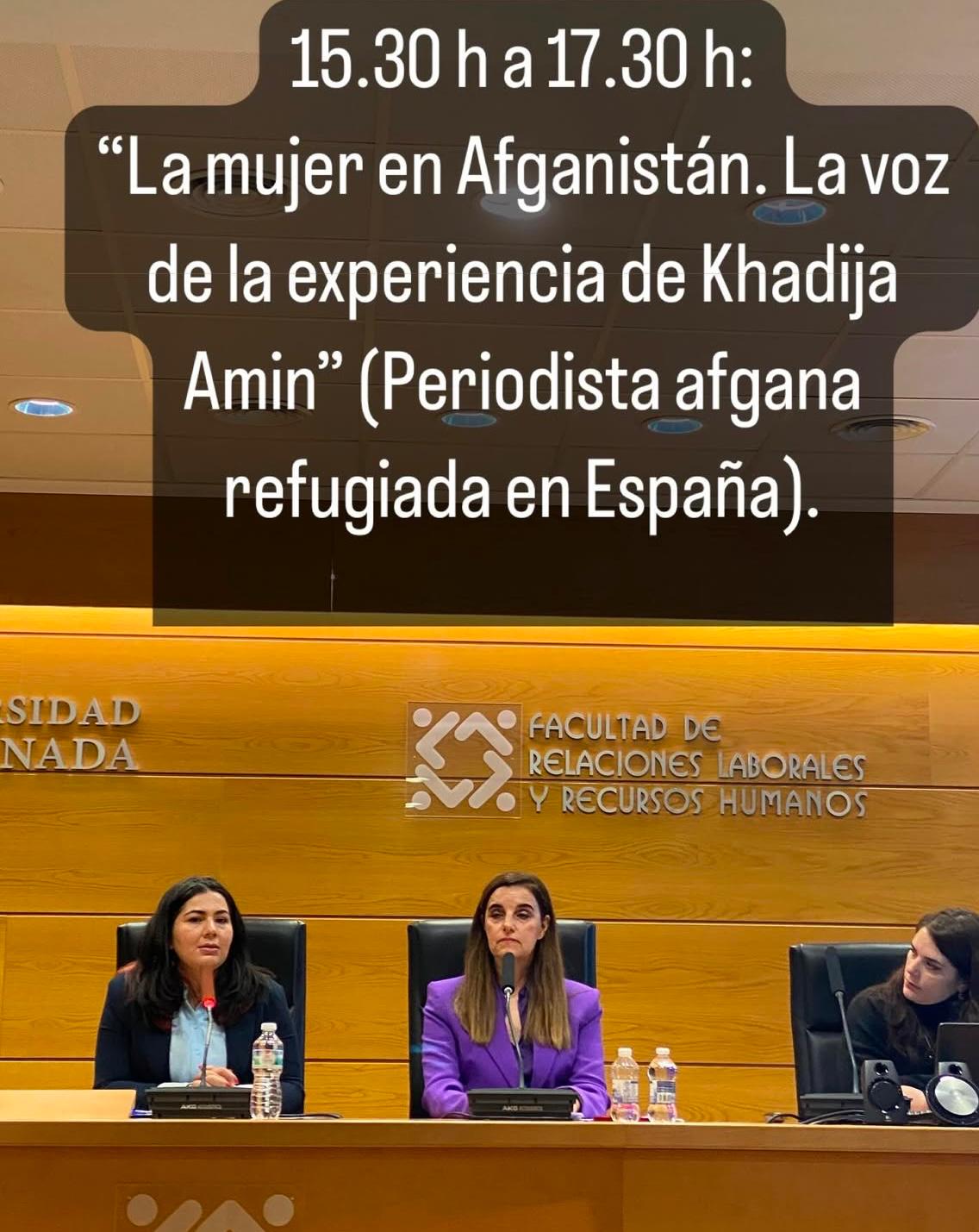 Jornada Internacional «De las solicitudes de asilo por violencias de género a los arraigos: la historia de Khadija Amin, periodista afgana refugiada en España», dirigida por Carmen Ruiz Sutil y coordinada por Natalia Vigano Martínez, con el apoyo del Instituto de Migraciones, el Programa de Doctorado en Estudios Migratorios, el Proyecto MAC-PsicoSalud y el grupo de investigación SEJ-175, todos pertenecientes a la Universidad de Granada.