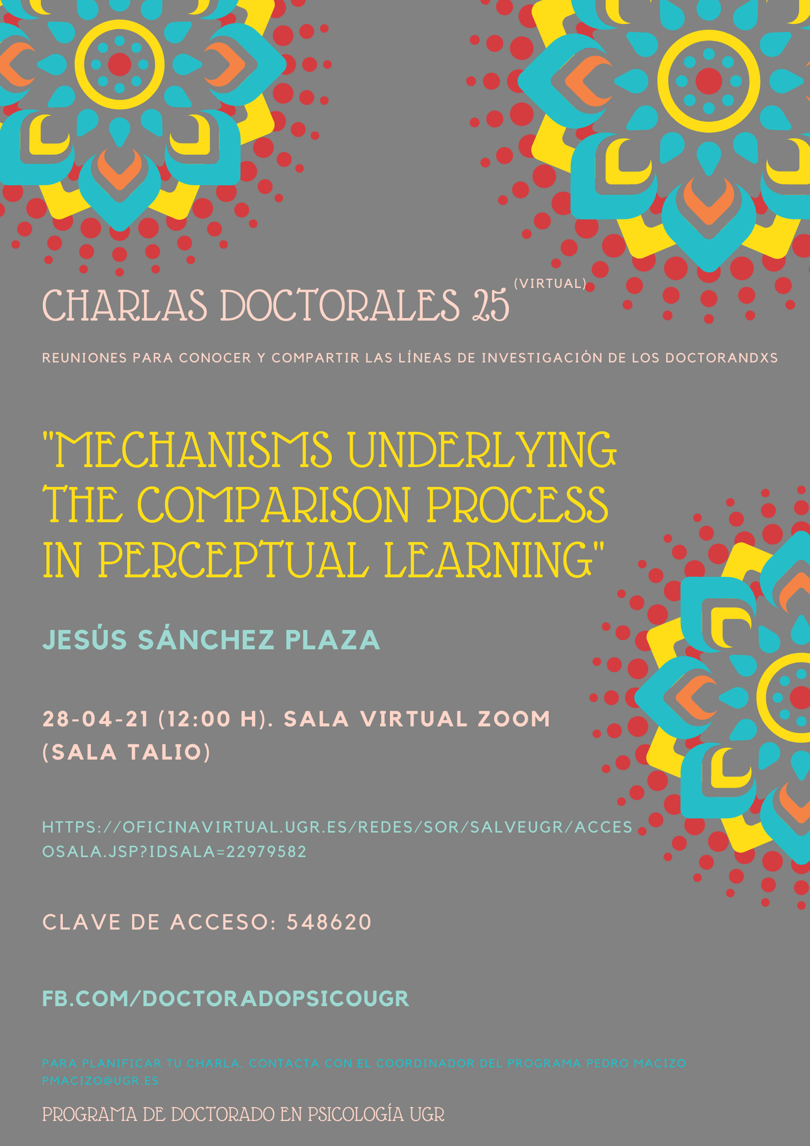 • Charlas doctorales Reuniones para compartir entre doctorados/as y profesores/as
