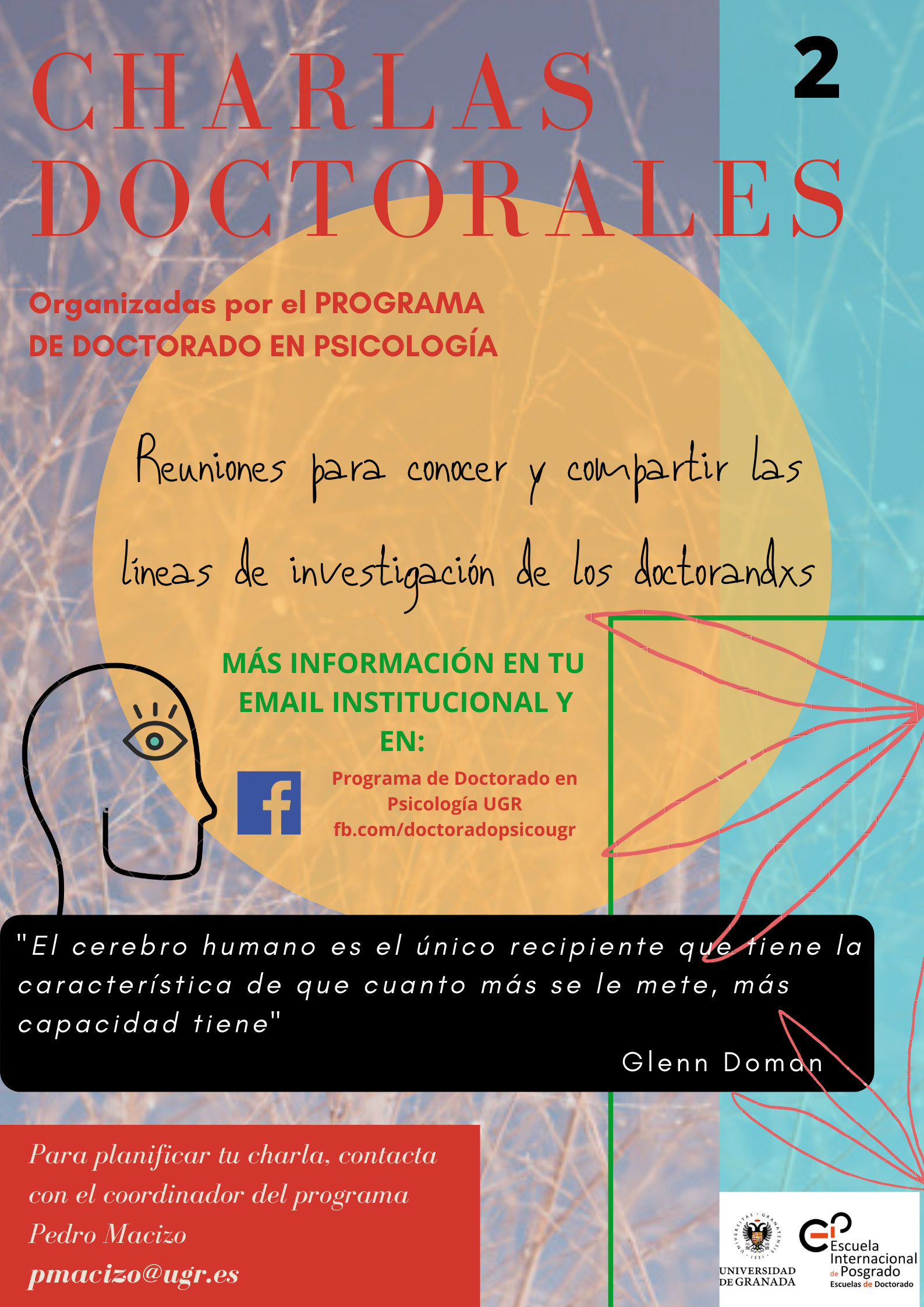 • Charlas doctorales Reuniones para compartir entre doctorados/as y profesores/as